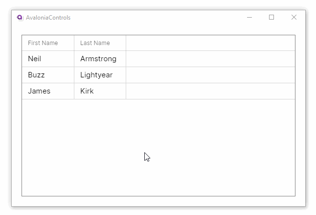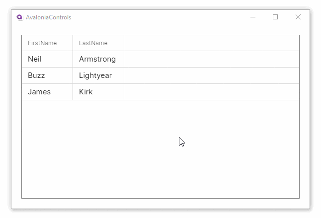 A DataGrid can contain multiple data grid columns and Avalonia UI has two built-in column types which can be used to display a different data types, and a template type that can customise the column appearance.